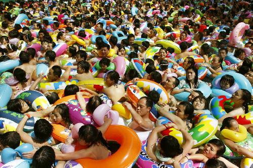 Con la subida de las temperaturas son muchos los chinos que se reúnen cada verano en el mayor parque acuático de China. La piscina se llama “Chinese Dead Sea” y, más que una piscina, es todo un complejo turístico al que año tras año acuden miles de locales para refrescarse del soporífero calor. El edificio tiene una longitud de 114 metros por 40 metros de alto y abarca una superficie total de 30.000 metros cuadrados. Tiene capacidad para albergar 10.000 bañistas.